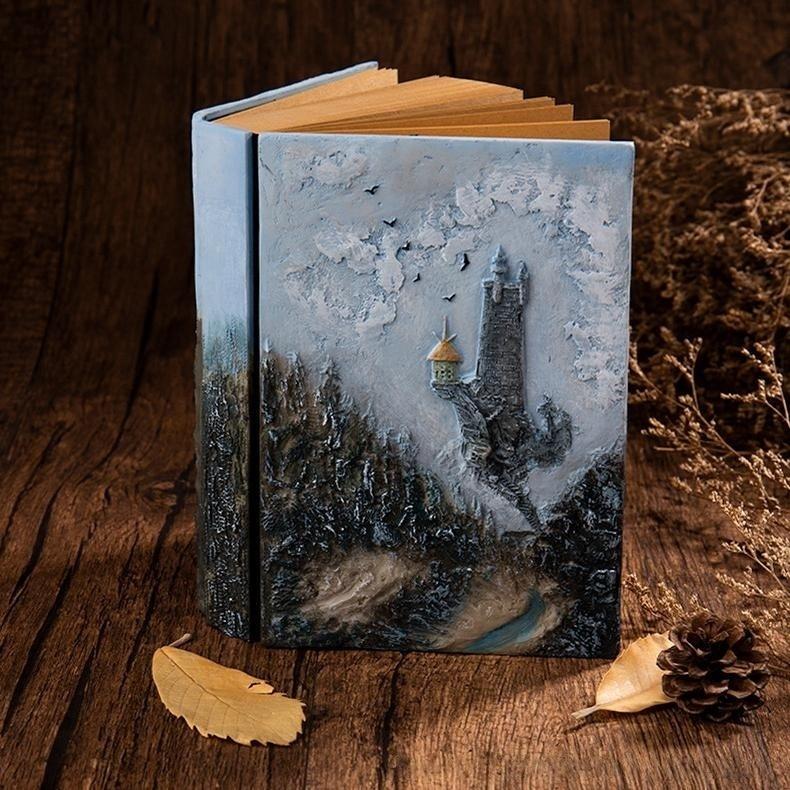 - 🏰 Handcrafted 3D Castle Design – Striking resin-embossed cover depicting a towering fantasy castle in either luminous daylight (Castle of Light) or mysterious moonlit shadow (Castle of Darkness).