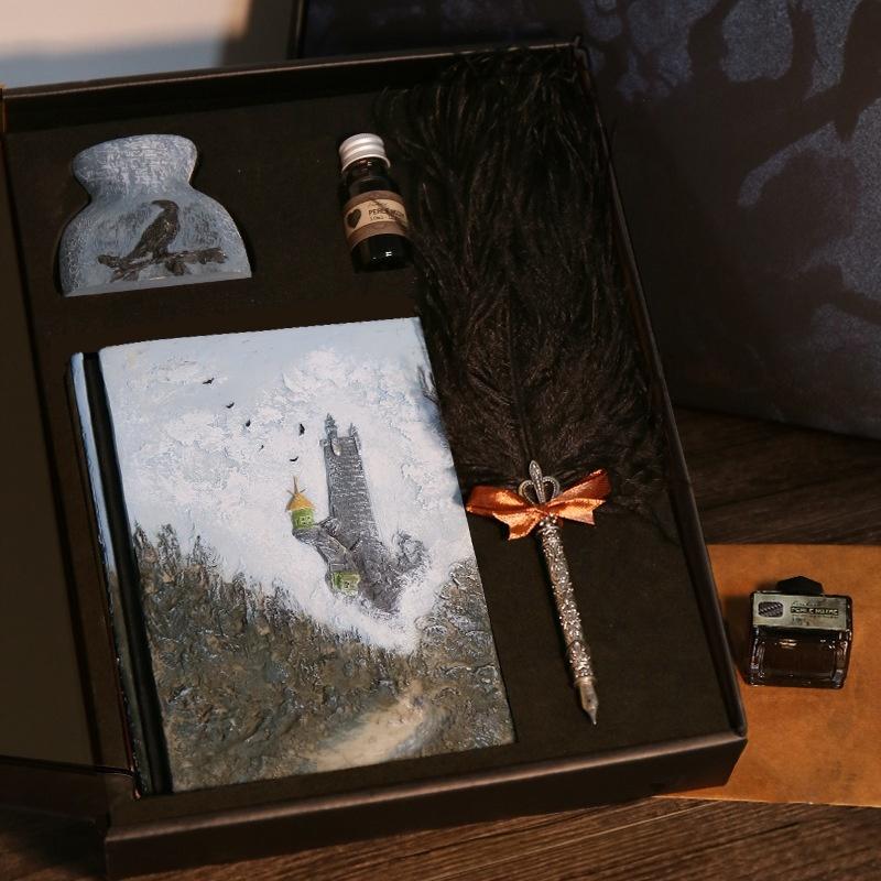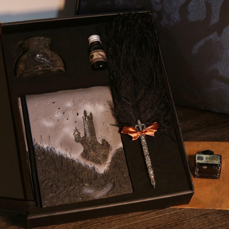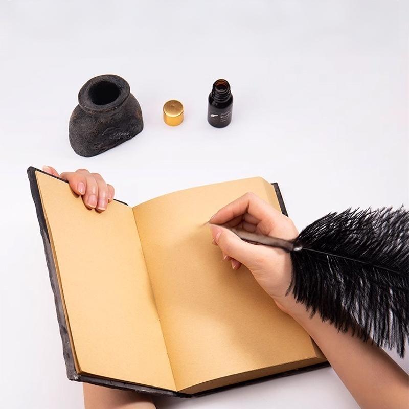 - Gift Set Includes: Journal, Feather Quill, Ink Bottle, Resin Pen Holder