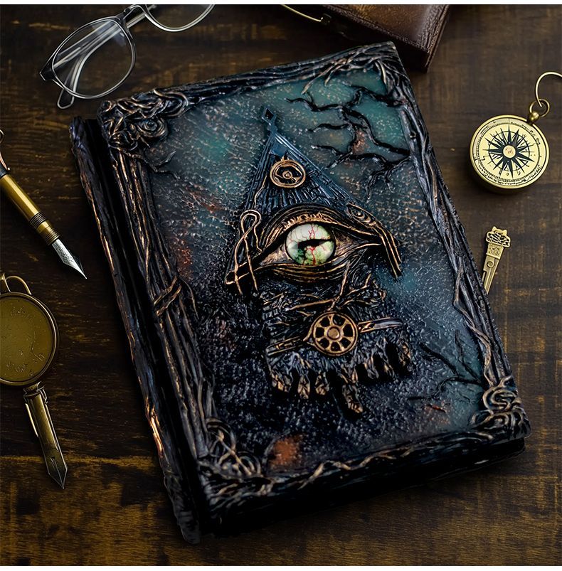 This A5 embossed resin-cover journal captures the allure of ancient grimoires and occult relics. At its heart lies a 3D sculpted eye, each edition in a unique color with symbolic meaning—Crimson for forbidden power, Shadow for unseen wisdom, Abyssal for deep mysteries, and Eclipsed for cosmic revelations.